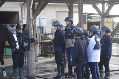 その後は、先輩たちと一緒に夕作業、騎手志望の子たちには体力トレーニングへ参加