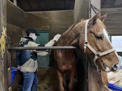 実際に馬に触れてもらもらうことで大きさに慣れ、距離を縮めていきます