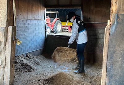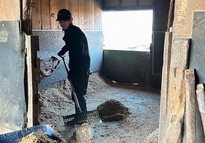 冬期体験合宿3日目も馬房掃除から1日がスタート!