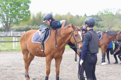 初回から飛び乗りに成功する生徒もいれば、馬の背中が少し遠く感じてしまう生徒も
