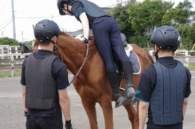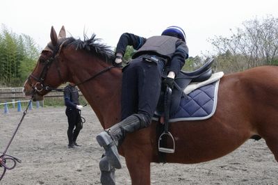 全員が馬装を終えて、馬場に入ると最初の難関である「飛び乗り」が待っています