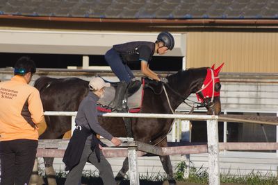 走路での騎乗姿勢を確認した後は、トレーニングルームへ移動